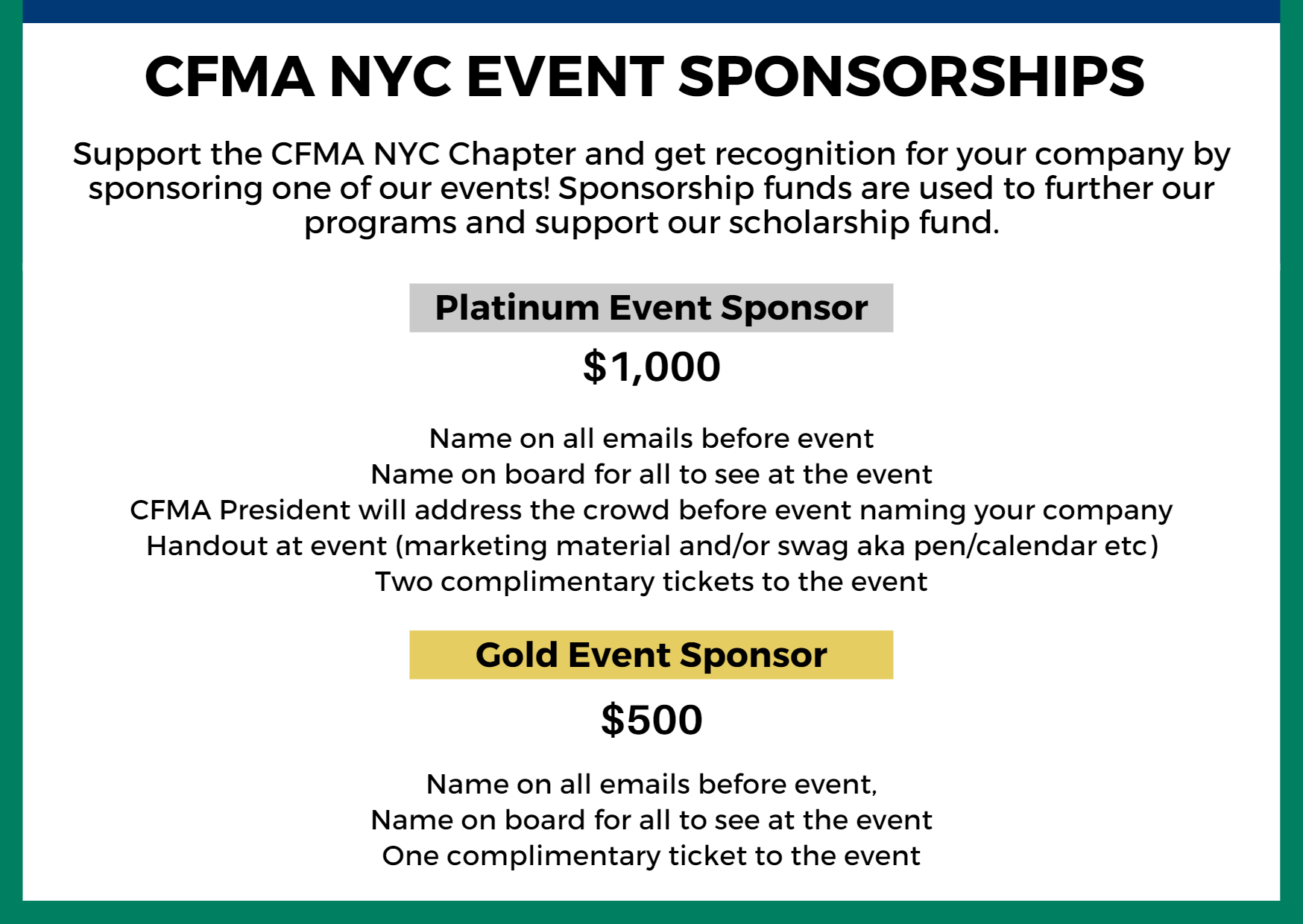 Event Sponsorships are available! Contact newyorkcity@cfma.org